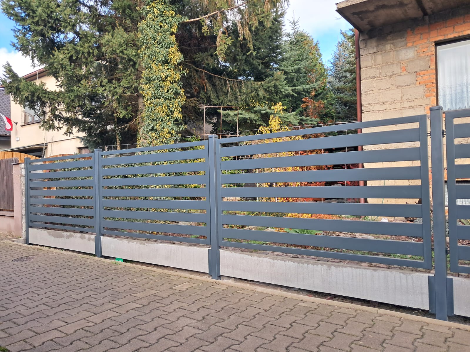 Nowoczesne i eleganckie rozwiązanie dla wymagających. Występują w wersjach z poziomych lub pionowych profili stalowych, najczęściej montowane z bramą i furtką w zestawie.